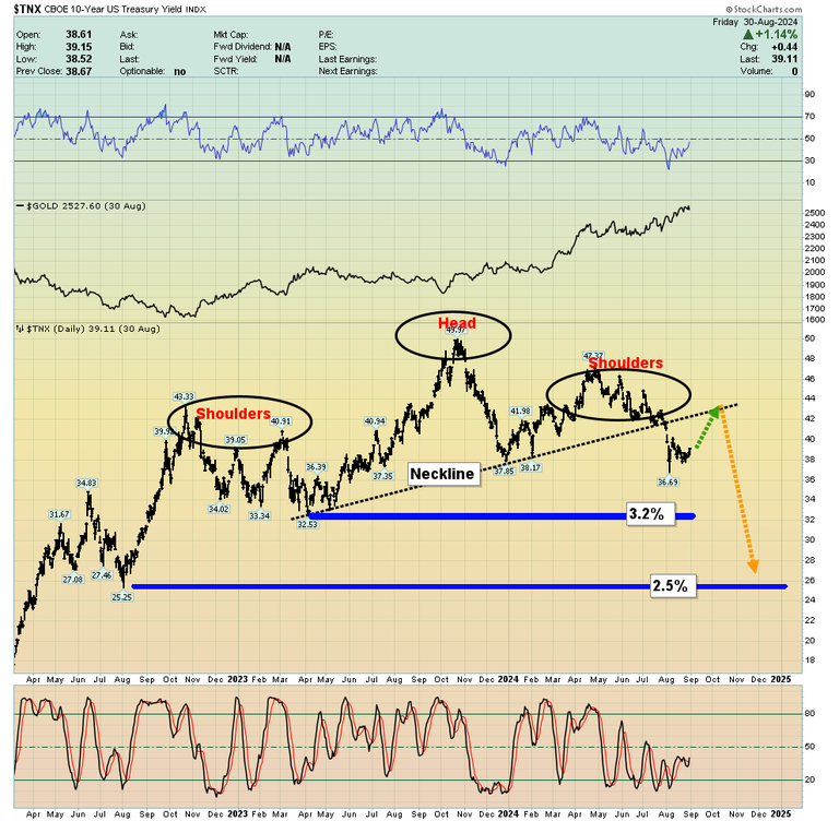 For a look at an important US interest rates chart. Double-click to enlarge. A substantial head and shoulders top has formed, and the neckline is broken.