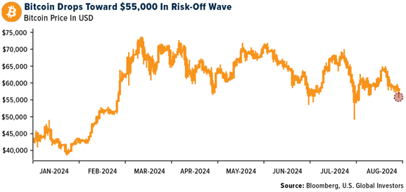 - Bitcoin flirted with a one-month low this week, reports Bloomberg, amid a wider retreat from riskier investments in global markets due to fears about the economic outlook. Bitcoin slid more than 4% at one point on Wednesday before paring a part of the decline.