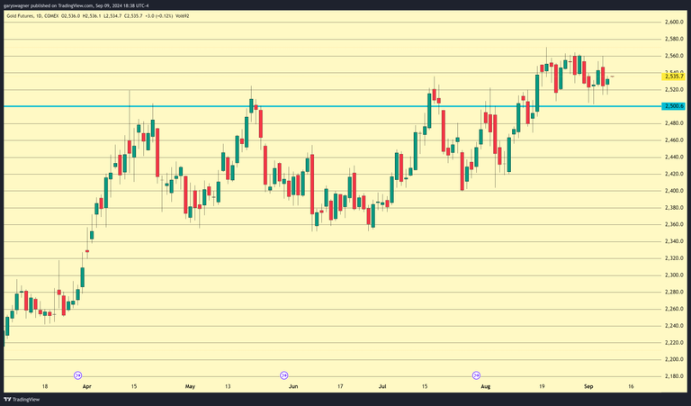 As of 6:00 PM EDT, gold futures basis the most active December contract is fixed at $2535.50 after factoring in today’s net gain of $8.70, or 0.34%.