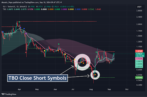 The TBO Indicator (Trending Breakout) is another critical tool in assessing $SUI’s potential. Despite several sharp sell-offs, the chart has printed multiple TBO Close Short signals (marked by orange diamonds ? below the price). These signals are often early indicators of an upcoming trend reversal, suggesting that the extended bearish trend might be coming to an end soon.