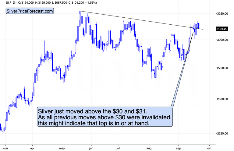 Silver price is likely to soar in the following years (and there’s a way to profit on silver more than it rallies), but in the near term, it’s likely to respond to the USD Index’s rally with a decline.