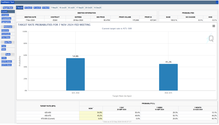 The Fed's unexpected 50-basis point rate cut has sparked expectations of further reductions in the coming months. Market participants are closely watching the central bank's moves, with the CME's FedWatch tool indicating a near-even split between predictions of another 50-basis point cut or a more modest 25 basis point reduction at the November FOMC meeting.