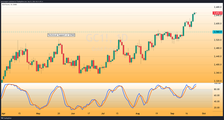 Gold futures reached another record high, closing just $0.20 below $2,660, as investors continue to react to the Federal Reserve's recent decision to begin interest rate normalization. The December contract settled at $2,653.40, marking a $6.30 (0.24%) gain despite moderate dollar strength.