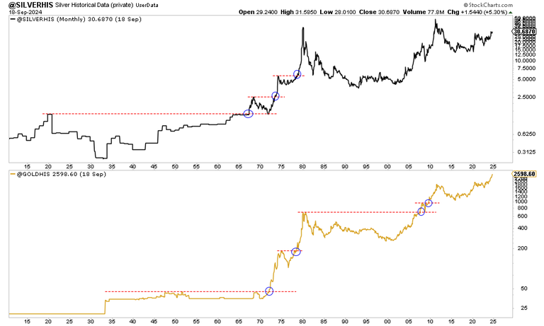 However, in the previous secular bull market, Silver first made a new all-time high in 1967 and later in 1973, while Gold made its first new all-time high in 1972.