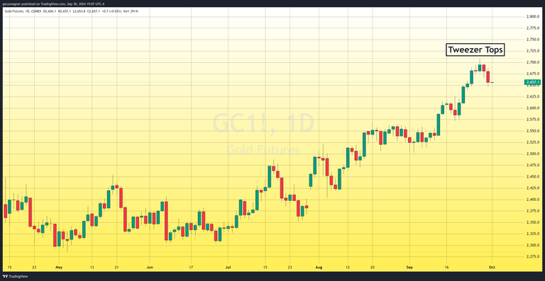 Gold prices are showing significant signs that a price correction is underway. Today gold pricing continued to decline by an additional $24.40. This followed last Friday’s $14.00, or -0.53%, price drop. It’s possible that Friday’s modest decline was an indication that the recent bullish trend had concluded.