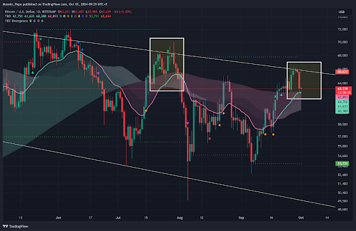 As Bitcoin tests critical resistance and the broader crypto market shows mixed signals, it is vital to remain cautious. The recent pullback to the top of the daily TBO Cloud suggests that Bitcoin's bullish momentum may be weakening, with potential downside targets at $61,327 and $55,000. However, the fourth quarter has historically been positive for Bitcoin, and there is still a chance for a bullish breakout.