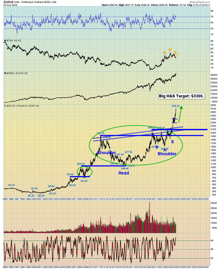 Double-click to enlarge. Gold’s rally began almost a year ago, from my last significant buy zone for investors (at $1810 in Oct 2023). That was the right shoulder low of a key inverse H&S pattern…