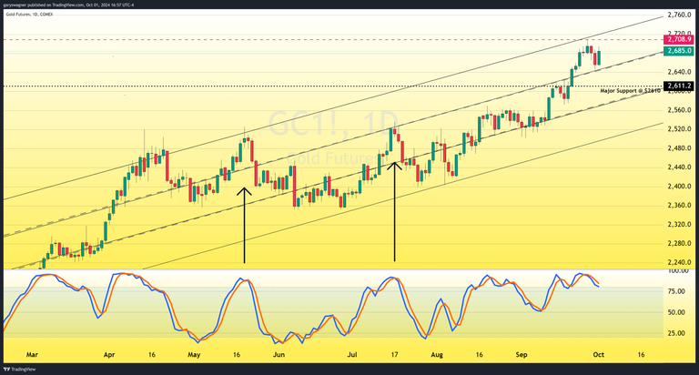 As a result, gold futures have rebounded strongly, gaining almost 1% and effectively erasing the previous day's losses. The most active December contract, which closed at $2,656.40 after a $24.40 decline on Monday, has now surged to $2,684.80, representing a significant gain of $28.40 or 1.07%. Dollar strength was a strong component of today’s $28 price advance. The dollar gained 0.45%, taking the index to 101.244.