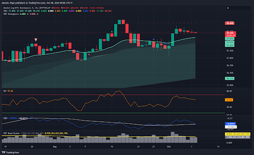 Bitcoin’s recent rejection at $64,400 and the current consolidation within the daily TBO Cloud suggest that the market is undecided. While some bullish indicators, like RSI resets and stablecoin dominance, point to potential upside, the rejection at key resistance levels cannot be ignored. For Bitcoin to regain its momentum, it will need to break out of this range and stay above critical support levels, particularly the weekly TBO Cloud.