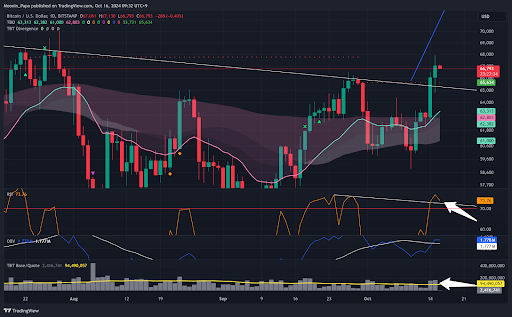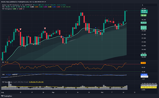 Bitcoin’s breakout above overhead resistance is a promising sign for the bulls. If Bitcoin can hold this level for three days, it could set the stage for a sustained rally toward $70,000 and beyond. However, as Bitcoin dominance rises, altcoins are feeling the pressure, and traders should remain cautious about diving into altcoin positions too soon.