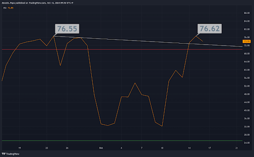 Daily RSI has exceeded its previous high, closing at 76.62, further confirming bullish momentum. Additionally, yesterday's trading volume surpassed that of the previous day, a key indicator that more buyers are stepping into the market, supporting the continuation of this rally.