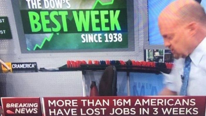 As you can see from this picture taken from Jim Cramer’s show as we began to rally off those lows, that rally made no sense to anyone because of all the bad news coming out at the time. We were seeing economic shut-downs worldwide, the death rates were hitting their highest levels, and economic reports were hitting record levels, such as the unemployment numbers. Yet, it was exactly at that bearish extreme that the market bottomed and began one of the strongest rallies in market history.