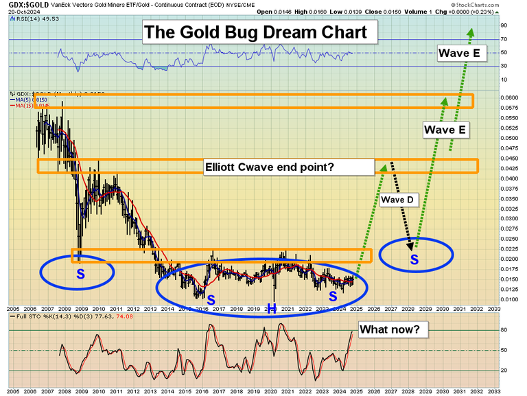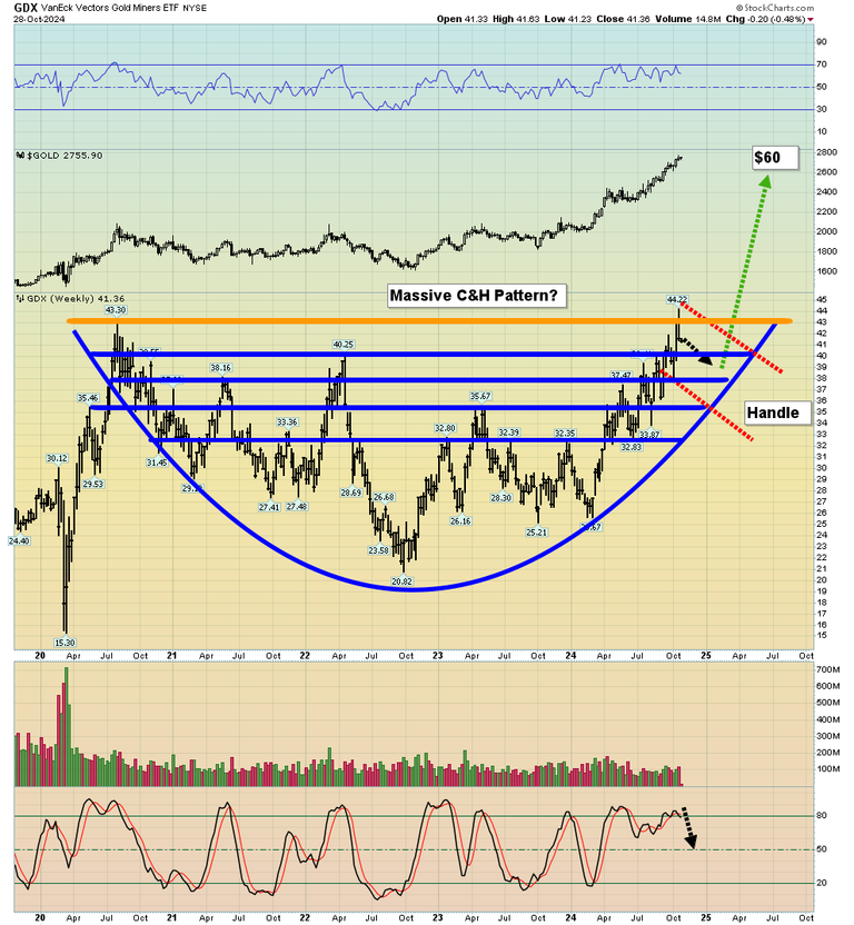 I’ll dare to suggest that the worst-case scenario for GDX is handle formation for this weekly chart C&H pattern.