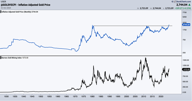 According to MacroTrends data, the inflation-adjusted Gold price closed October at its second highest level in history. It was only $3/oz away from an all-time high.