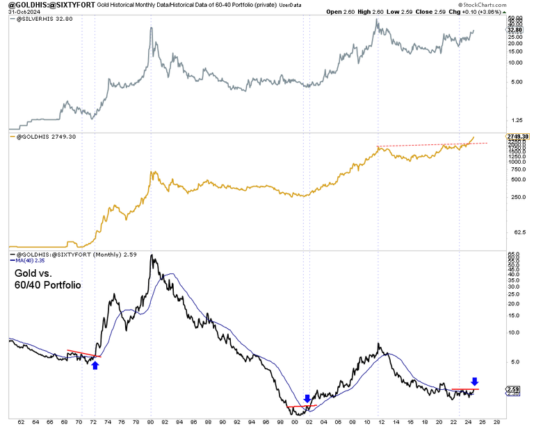 You will want to position before Gold explodes higher against the 60/40 portfolio and breaks out of its 45-year base against inflation.