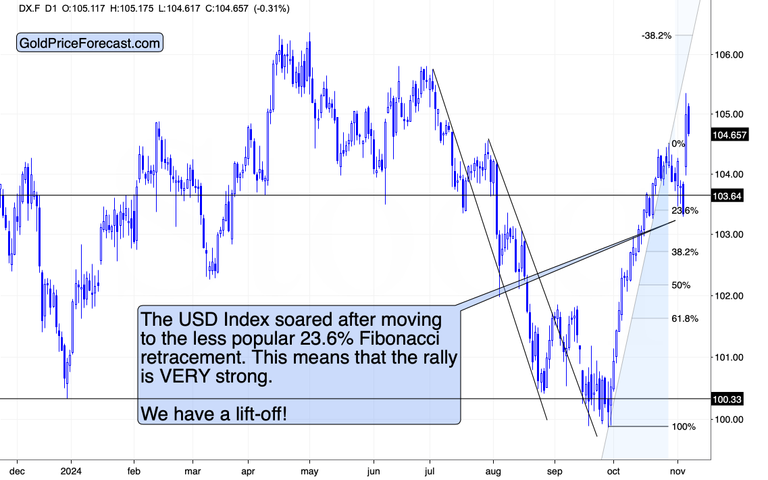 And no, I don’t mean Trump’s presidency, but that’s true as well. I mean the rally in the USD Index and the declines in the precious metals and mining stocks
