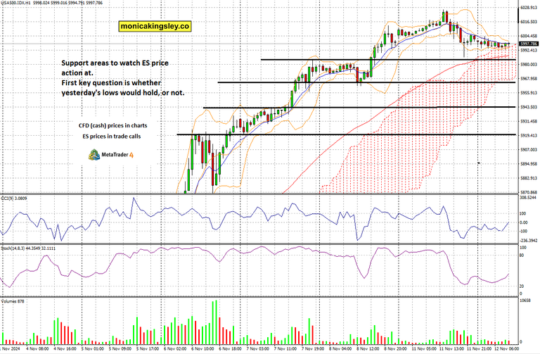 S&P 500 faced sellers right at the open, and the telltale was Nasdaq underperformance – making for quick intraday short gains on the first dump already. Monday's ES levels and tired bumping of NDX into upside resistance established that day, didn't allow for any addition to swing longs – while the bull upleg is firmly established for 7 days already, a test of the below indicated supports isn't out of the question, especially when I had been voicing distrust of semiconductors and Nasdaq early yesterday (TradingView heatmaps included).