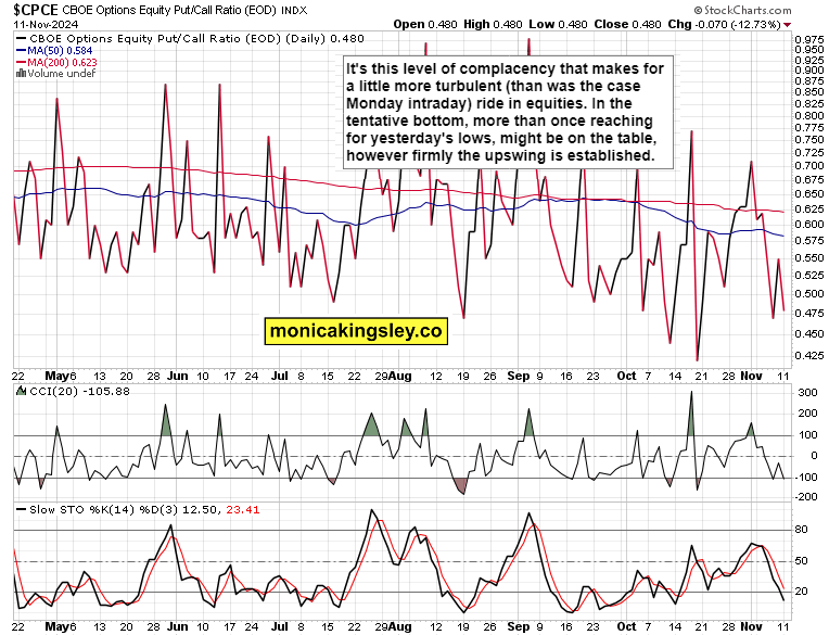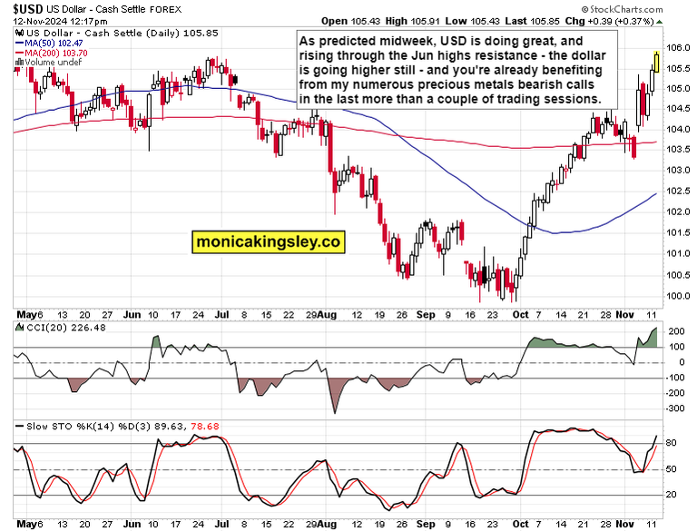 Continuing with chart-packed daily analysis, consider for all the stellar crypto gains called for you weeks before markets made up their mind on the elections, and note as well the called steeply rising USD amid the calm in options market.