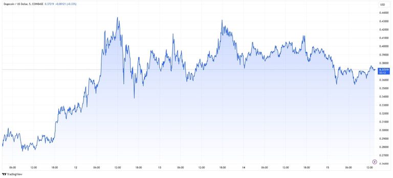 Dogecoin also lost some of its momentum but with more intensity. The Shiba Inu-themed coin has fallen by 20% from its recent high of over 40 cents, now trading at 37 cents.