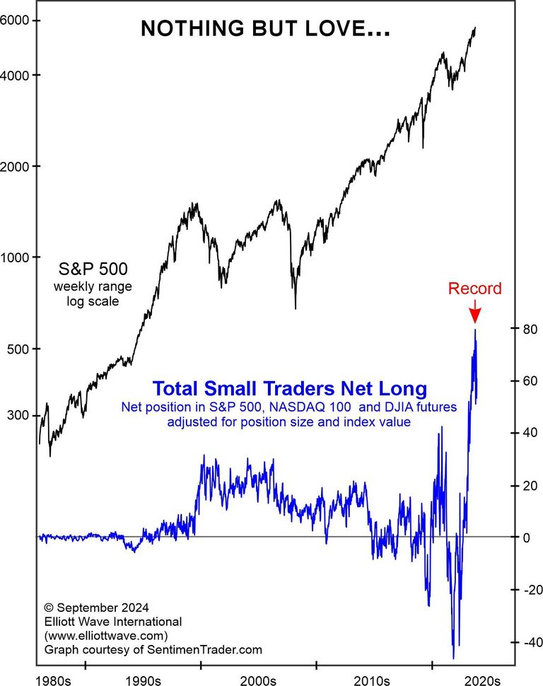 Elliott Wave International puts out a publication called The Elliott Wave Theorist, which always includes interesting information regarding the stock market. And, I am going to present a few of their recent narratives and charts, which outline the extremes we are seeing in the market today.