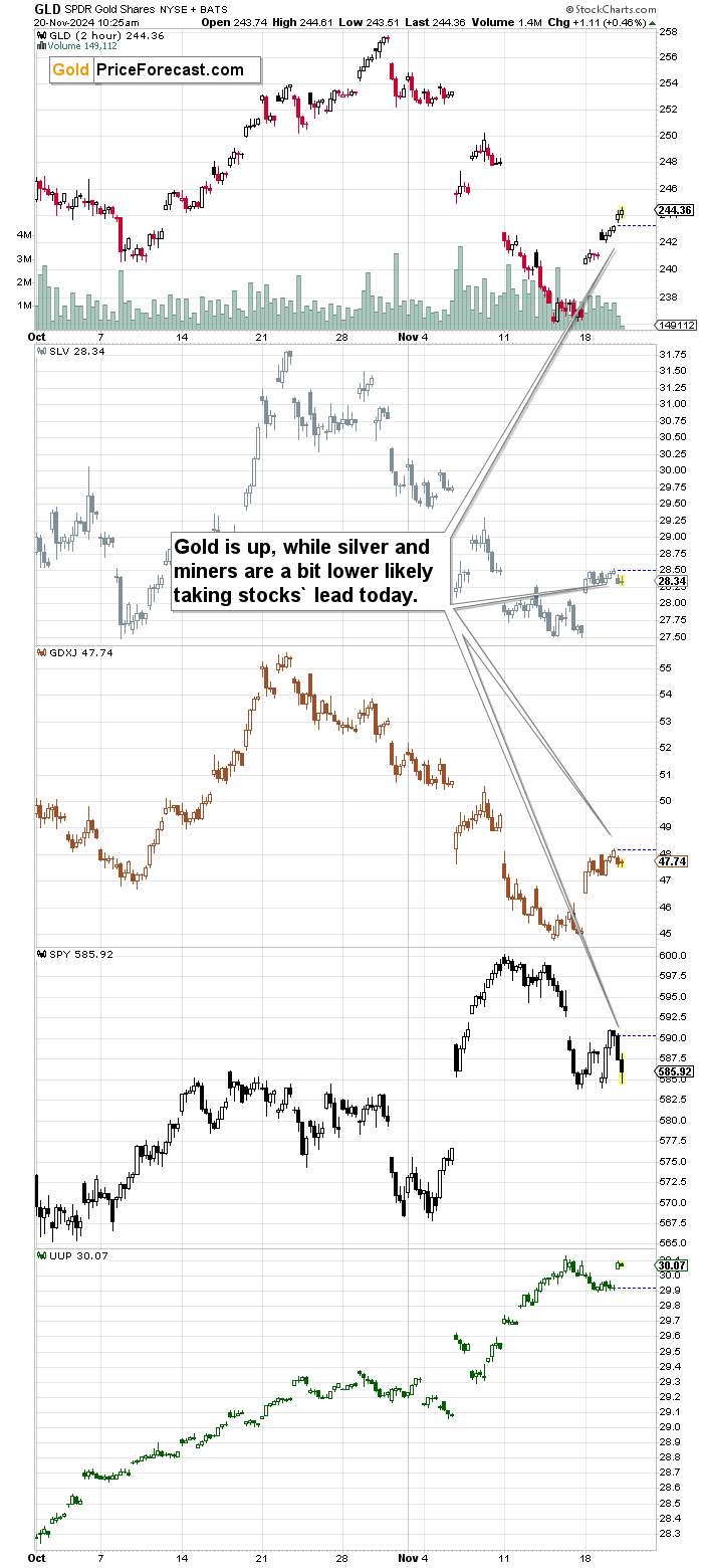 In short, it’s almost certainly all about the temporary impact from the stock market. The S&P 500 Index is down today. Not significantly, but enough to make the parts of the precious metals market more linked to it underperform.