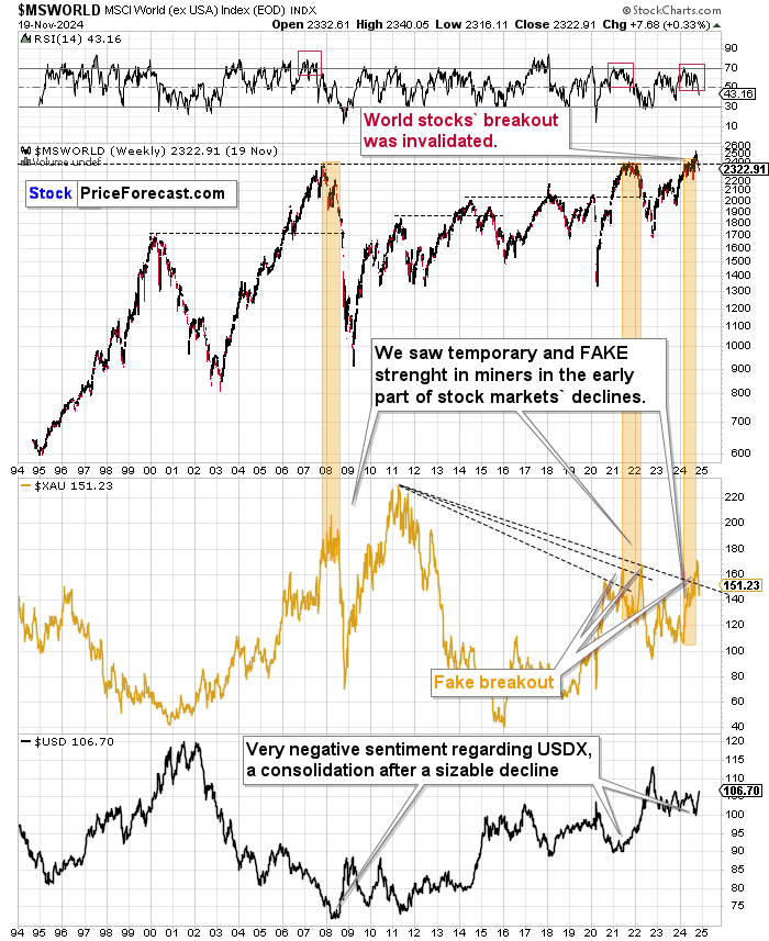 First of all, we saw an invalidation of the move above the previous highs in world stocks.