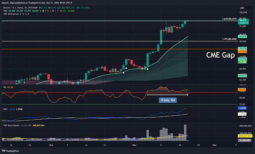 All major indicators point to sustained bullish momentum. Bitcoin's trading volume has reached levels not seen since March and is closing in on the all-time highs set during the 2021 bull market. This uptick in volume highlights increasing investor confidence and strong demand at current price levels.