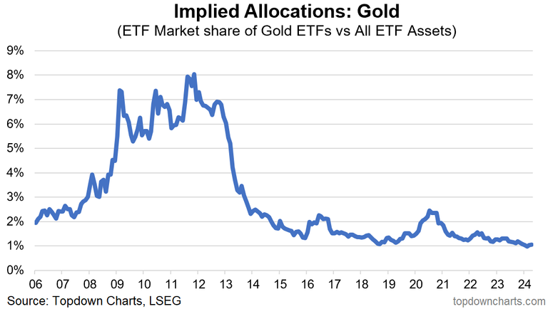 Near the end of 2011, the share of Gold ETFs against all ETF assets was 8%.