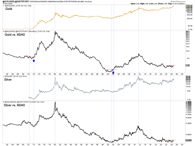 When Gold begins to outperform the 60/40 portfolio and stock market in earnest, Gold and precious metals will have moved beyond the ground floor.