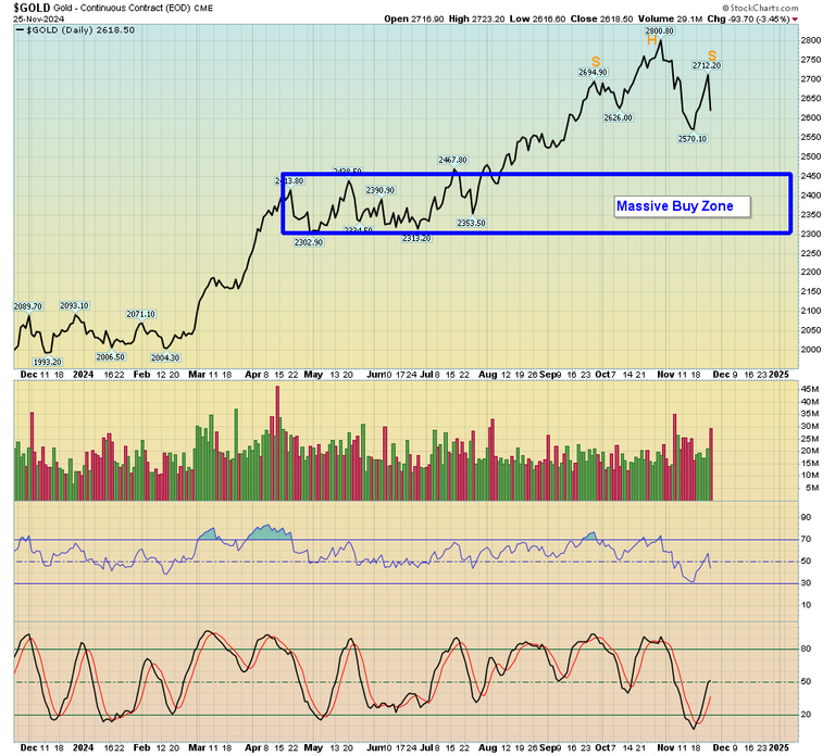 - If it fully forms, it would likely be completed near the key $2450-$2300 buy zone for gold.