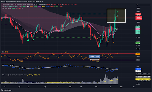 OTHERS.D, which tracks smaller-cap altcoins, is showing encouraging signs of bullish momentum. The daily TBO Cloud has tightened significantly, and the TBO Slow line has flattened out, indicating that altcoins may be approaching a breakout. Weekly reversal signals on OTHERS.D add to the optimism, though these may take weeks to fully materialize. While altcoin market cap growth is still in its early stages, these indicators suggest the potential for a significant rally in the near future.