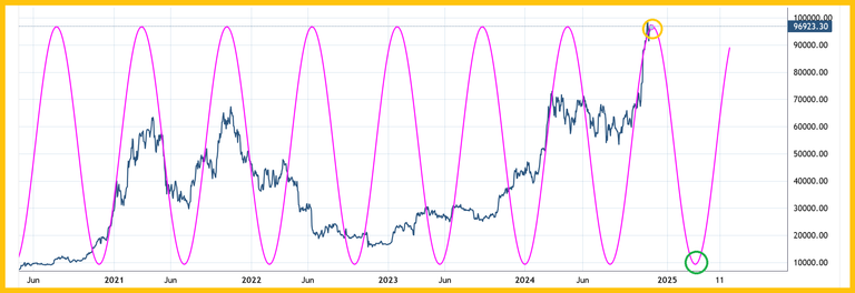 Crypto? Double-click to enlarge this 6month cycle chart for bitcoin. Cycle analysis tends to flounder in a sideways market, but it’s quite accurate at projecting major highs… and it’s projecting one for bitcoin is occurring now.