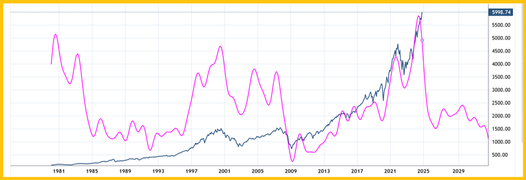 For a look at the market from a cyclical perspective. Double-click to enlarge. Using a mix of more than a dozen long-term cycles, the SP500 is projected to enter a long-term bear market in 2025.