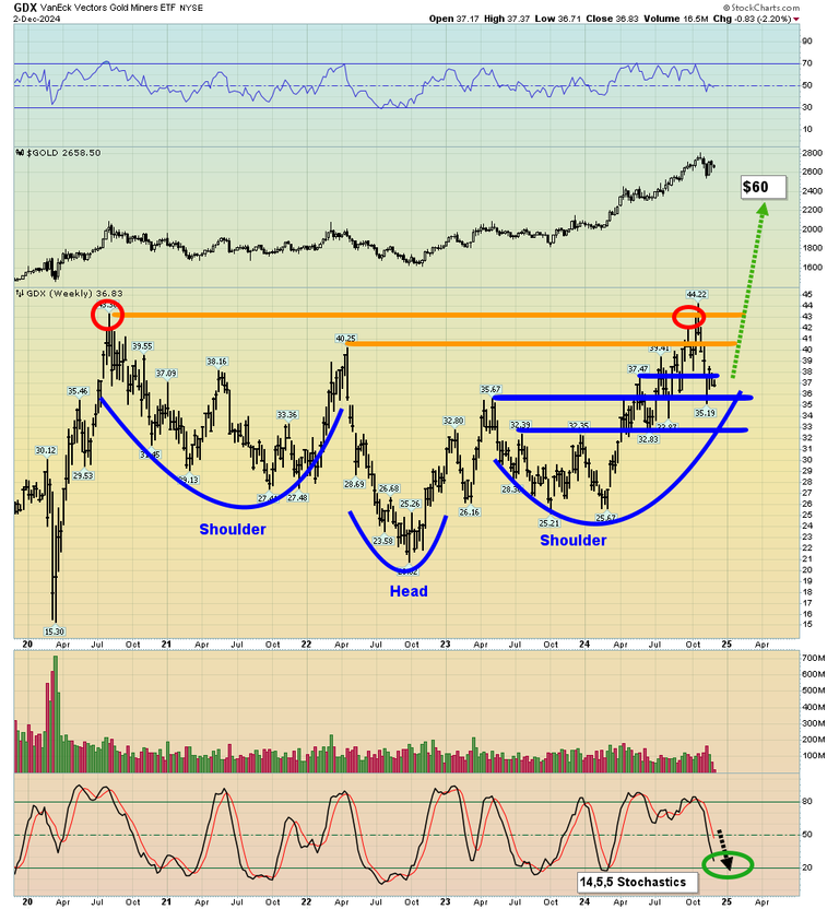 - A turn should help launch GDX out of the huge inverse H&S pattern… and usher in 12 to 24 months of outperformance against gold!