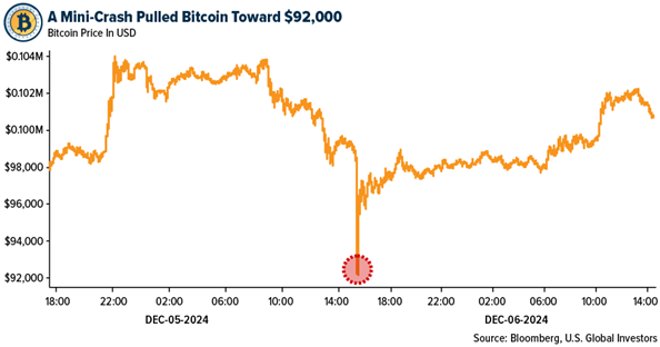 - Bitcoin fell to as low as $92,144 before rebounding to $99,500 as it appears to have been a mini flash crash of the token on December 5. Although it feels like there is still room to run, investors are taking profits, said Josh Gilbert, a market analyst at eToro.