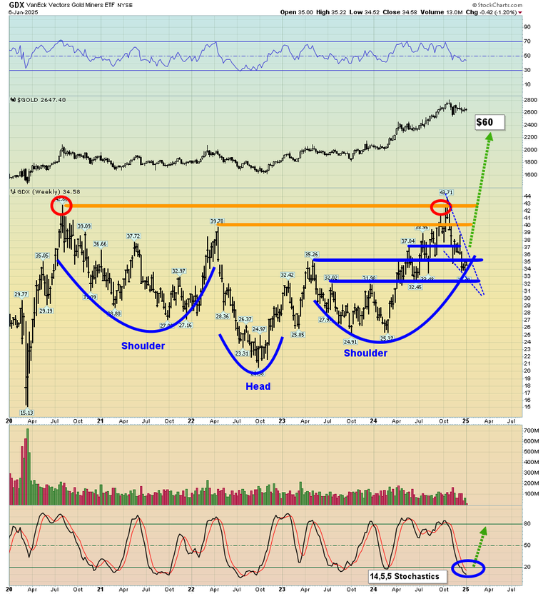 Now I am very happy with those charts, and to view one for GDX. A massive inverse H&S pattern is in play, and…