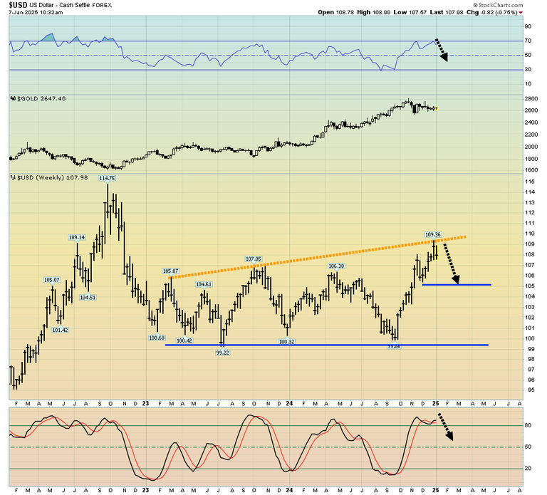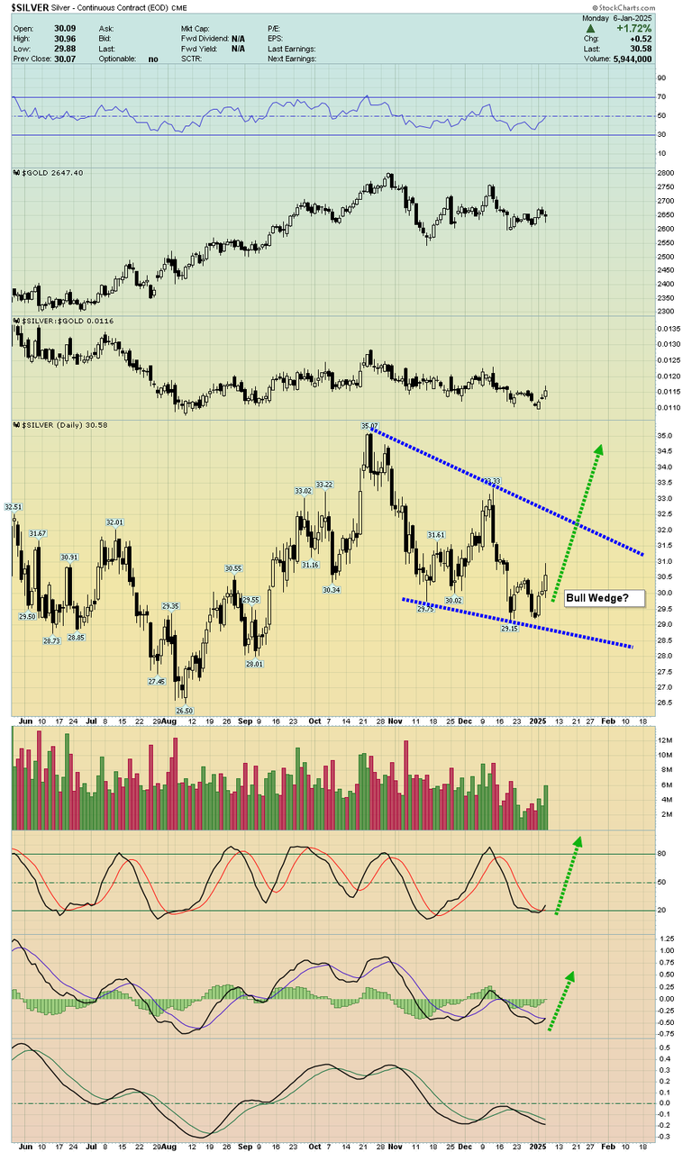 - Most bank analysts are projecting modest upside for gold this year. Some are a bit more bullish (but not much) because of no meaningful cut in the US government’s gargantuan debt.