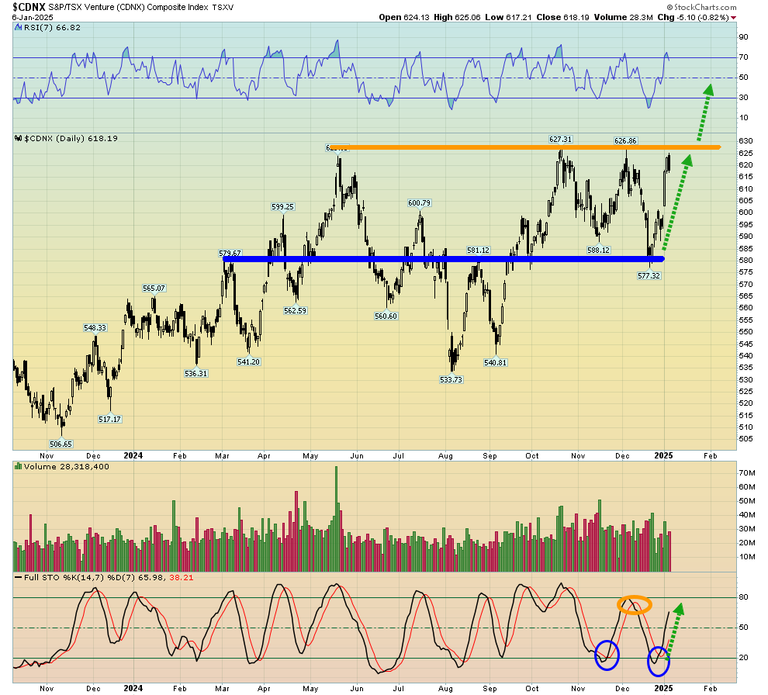 A breakout over the 630-640 zone looks imminent and that’s likely to see this key junior resource stocks index rocket to 1000!