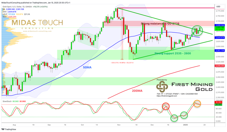 As we move further into January and February 2025, investors should closely monitor gold’s interaction with key technical levels, particularly the resistance zone between USD 2,700 and USD 2,727. A successful breach of this area could quickly lead to a test of the all-time high. However, the market may still require additional consolidation before making a decisive move. Factors such as Federal Reserve policy decisions, geopolitical tensions, and economic uncertainties will continue to influence gold’s trajectory. While the overall outlook appears favorable, investors should remain vigilant and prepared for potential volatility as the market navigates this crucial juncture in gold’s price action.