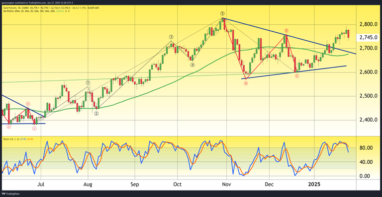 Gold prices experienced a significant decline today, dropping more than 1.3% as investors shifted their focus to the Federal Reserve's first policy meeting of 2024. February gold futures fell by $36.30 to settle at $2,741.10, marking a notable pullback from recent highs.