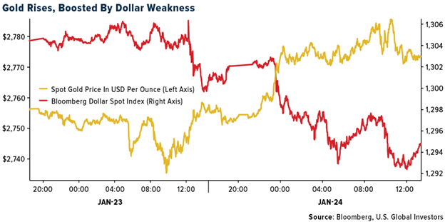 - The best performing precious metal for the week was palladium, up 4.18%, which may have outperformed on certain incentives for EV growth being removed from with the incoming administration. Precious metals refiner Heraeus noted that “tariff concerns have proved contagious in the precious metals markets, as gold, silver, and platinum have all been affected.” On Friday, President Trump softened his stance on China tariffs—perhaps as a negotiation tactic. Nevertheless, the dollar weakened, and gold prices rose.