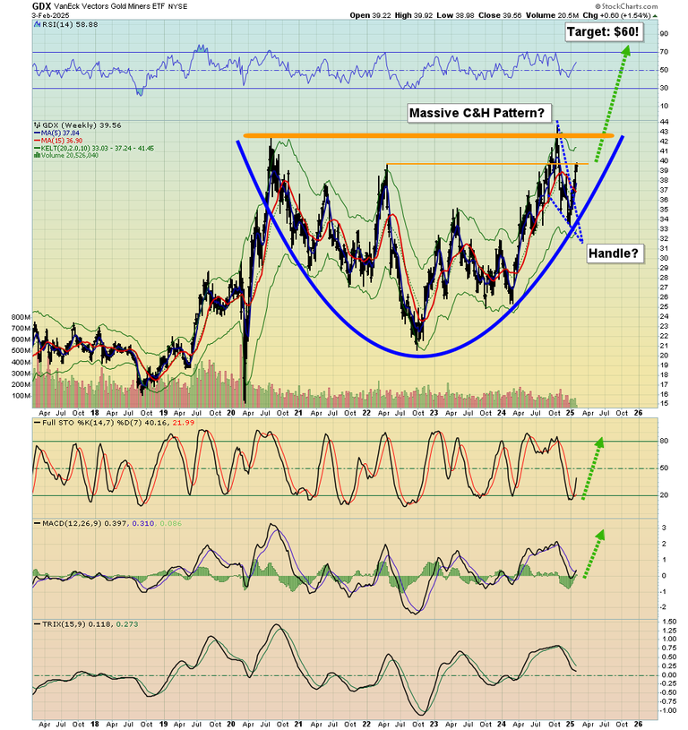 For a look at GDX. Double-click to enlarge this spectacular weekly chart. The massive C&H action suggests that a 5%-10% move higher for gold (to $3000-$3200) could be accompanied with a 50% surge for GDX!