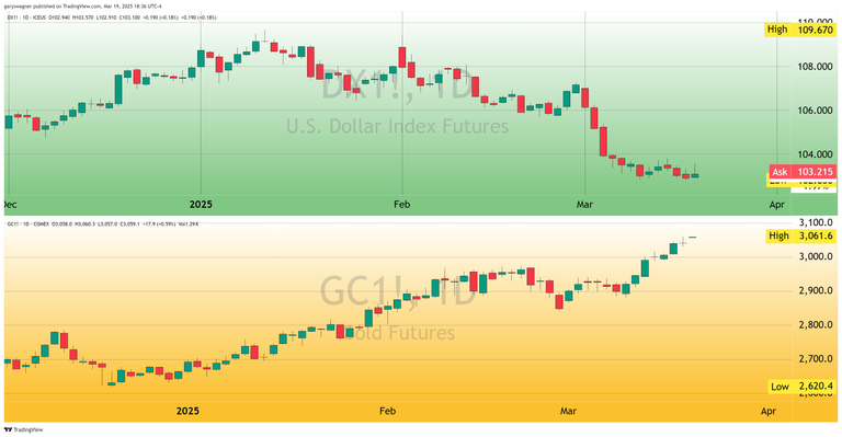 The dollar's recent performance represents a significant reversal from its February position. As recently as February 27, the dollar index closed above 107, but has since experienced a devaluation of just over 4% in the past 13 trading days.