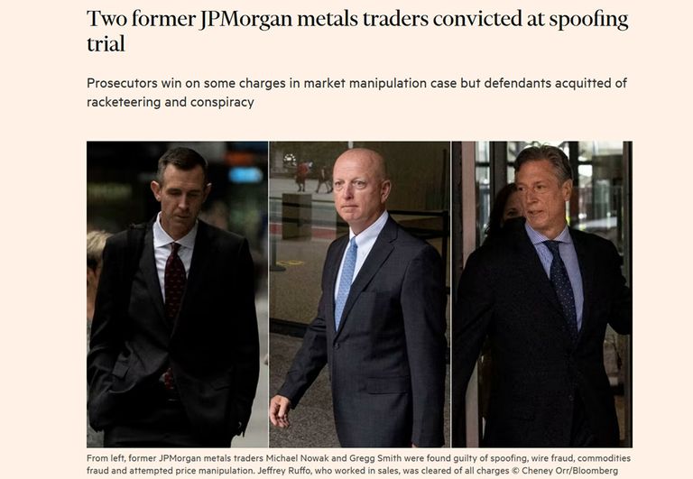 This form of manipulation isn't just theoretical. In 2023, two former JP Morgan precious metals traders, Michael Nowak and Gregg Smith, were convicted of price manipulation and spoofing as part of a broader market-rigging scheme, resulting in fines and prison sentences. Yet, despite these convictions, similar tactics continue to be used in one form or another.