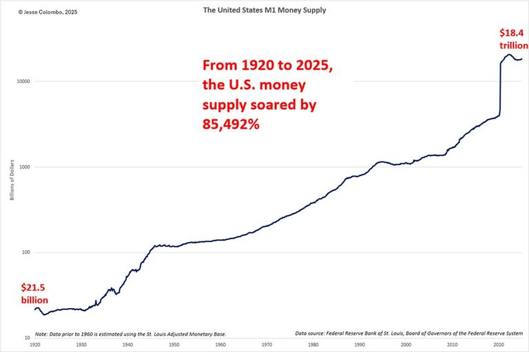 This motivation becomes clear when considering that the U.S. money supply has surged by over 85,000% since 1920, drastically eroding the dollar's purchasing power. As the dollar declines, the cost of living continues to rise, making a normal middle-class lifestyle increasingly out of reach for most Americans. In contrast, while paper currencies around the world have steadily lost value, silver has retained its purchasing power, serving as a hedge against inflation and currency devaluation.