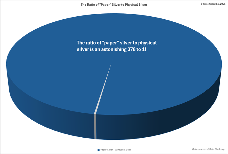 The risk of an explosive silver short squeeze is further amplified by the astonishing ratio of 378 ounces of paper silver—including ETFs, futures, and other derivatives—for every single ounce of physical silver. This extreme imbalance highlights just how overleveraged the paper silver market has become.