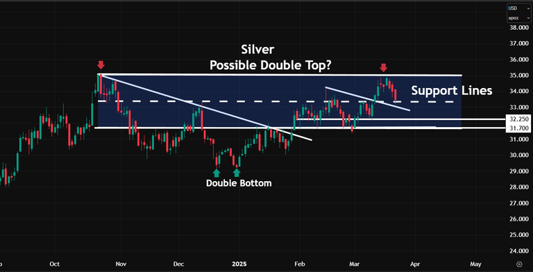 Silver has played "third fiddle" in the metals rally, with Gold and Copper stealing its thunder. After achieving $35 in mid-October 2024, Silver has consolidated in a sideways channel, leaving you with several areas of support and resistance before testing this level again earlier in the week. From my 25 years of experience in futures and commodities, I have learned that pullbacks are healthy in bull markets, and "double-tops," when broken, can lead to explosive rallies. A double top (two price peaks at similar levels) can signal a potential downtrend. When broken, a triple top (three peaks at similar levels) can become a strong bearish reversal pattern, indicating another leg higher. For those looking for "the story" behind Friday's selloff, I cover those types of moves in a daily video called the "Metals Minute." Register for a free two-week trial here: Get the Metals Minute.