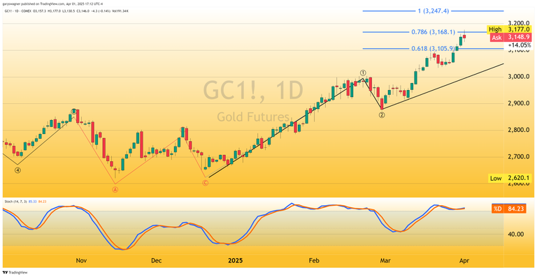 Gold futures reached an unprecedented high as investors flock to the precious metal amid growing economic uncertainty surrounding impending tariff policies. The most active June contract closed the New York session at $3,152.20, marking a modest gain of $1.90 (0.06%), after touching an all-time peak of $3,177 during intraday trading.