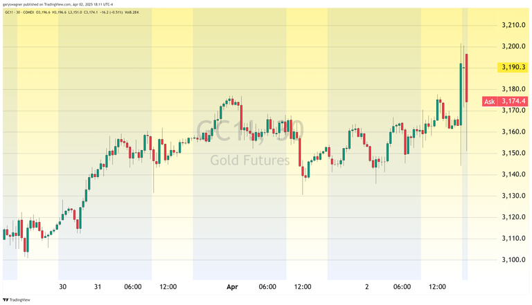 The precious metal climbed to a record $3,201.60 per ounce in aftermarket trading based on the June futures contract. By early evening, gold had settled at $3,190.60, representing a substantial single-day gain of $41.80. Notably, the final hour of trading coinciding with Trump's speech triggered an additional $20 surge beyond the day's earlier $20 increase.