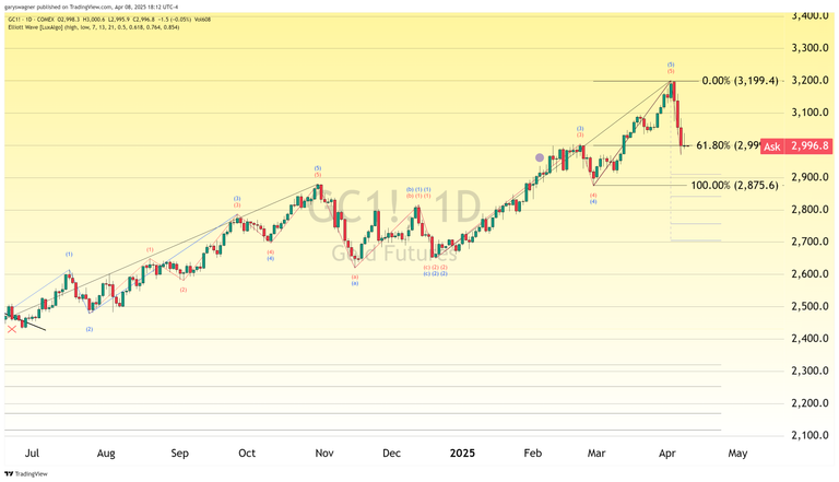 Gold prices showed mixed movement in today's trading session as investors navigate the uncertain waters of escalating global trade tensions. The most active June futures contract reached an intraday high of $3,037.90 before settling at $2,998.30, down marginally by $0.50 or 0.02% as of 5:05 PM ET. A weakening U.S. dollar provided some support earlier in the session, helping to limit potential losses as markets prepare for Wednesday's trading open in Australia.